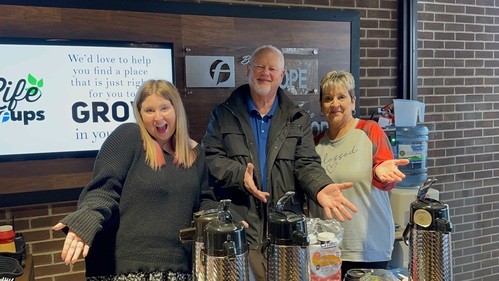 A typical service will last about 75 minutes. We sing more of a contemporary style of music that is led by our worship band. Our Pastors deliver a message that is based on the Word of God. We have a nursery provided for children through two years of age, and a special program designed for children who are three years old through the fifth grade. We hope you'll come a little early to enjoy a cup of coffee at our coffee bar, speak with our greeters, and get children signed into our First Kids Ministry if needed.